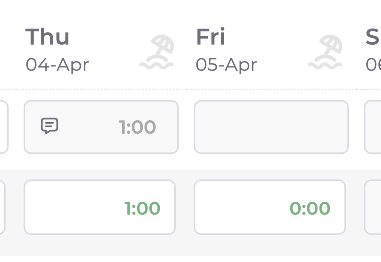 In the bottom you will find a sum of time logged per day and week. Plus, a colour indication if you've completed your time for the day/week.