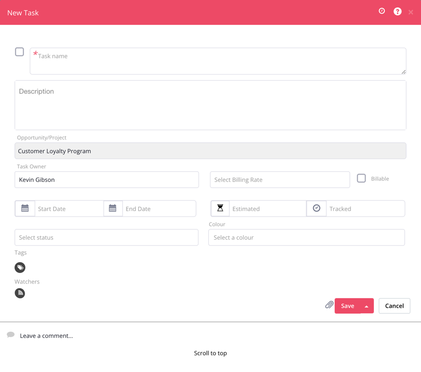 We’ve added an option to add a comment/quick update on a task. This modal includes the ability to edit the task status, update the color and add/remove tags. This means you no longer need to go into the "Edit Task" modal (which was quite extensive for this purpose) to makes quick changes to a task.
