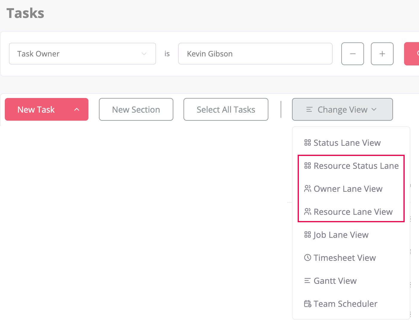 Setting you as the Task Owner in the filter (done by default), you can easily track the status of a task, by the individual resource that you’ve allocated.